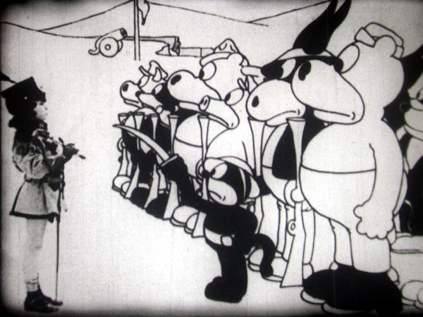 Article épuisé | CATEGORIE : Film 16 mm TYPE DE FILM : Animation METRAGE : 80 mètres Dessin Animé de 1926 réalisé par Walt Disney. La guerre est déclarée ! Julius parcourt la ville pour rallier les habitants, tandis qu'Alice passe les troupes en revue. Mais bientôt, une armée de souris assiège la cité à coups de canons. Blessé puis vite remis sur pied, Julius retourne au combat et déploie des ruses ingénieuses : fromage en appât, ventilateur pour déloger l'ennemi, et sa queue magique pour terrasser les assaillants un à un. Une bataille pleine d'humour et d'inventivité où l'ingéniosité triomphe du chaos. Titre original: "Alice's Little Parade". Le film est complet, mais le mot FIN n'est pas d'origine. | REF. : 26220