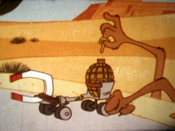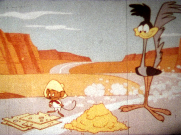 | Article épuisé | REF. : 26658 CATEGORIE : Film 16 mm TYPE DE FILM : Animation METRAGE : 90 mètres Dessin Animé de 1965 réalisé par Friz Freleng et Hawley Pratt. Dans la zone frontière entre le Mexique et les États-Unis, Speedy Gonzales, la souris la plus rapide du monde, défie le Road Runner dans une course aussi absurde qu'effrénée. Bien décidés à mettre fin à cette démonstration de vitesse, Sylvestre et Wile E. Coyote unissent leurs talents… surtout pour accumuler les catastrophes. Rochers mal dirigés, explosifs capricieux, gadgets improbables et chutes vertigineuses s'enchaînent avec une constance admirable: celle de l'échec. Entre stratégies ingénieuses et résultats désastreux, nos deux chasseurs découvrent qu'à vouloir courir plus vite que les champions, on finit surtout par exploser avant la ligne d'arrivée. Titre Français: "La Course affolée". |